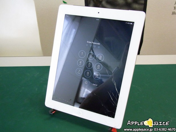 バキバキに画面が割れているiPad9世代のフロントガラス交換